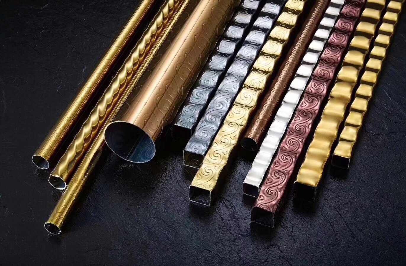 表面处理:常规砂光,镜光,电镀,烤漆,石纹,压花,波浪纹,罗纹管,木纹管可根据需求定制。